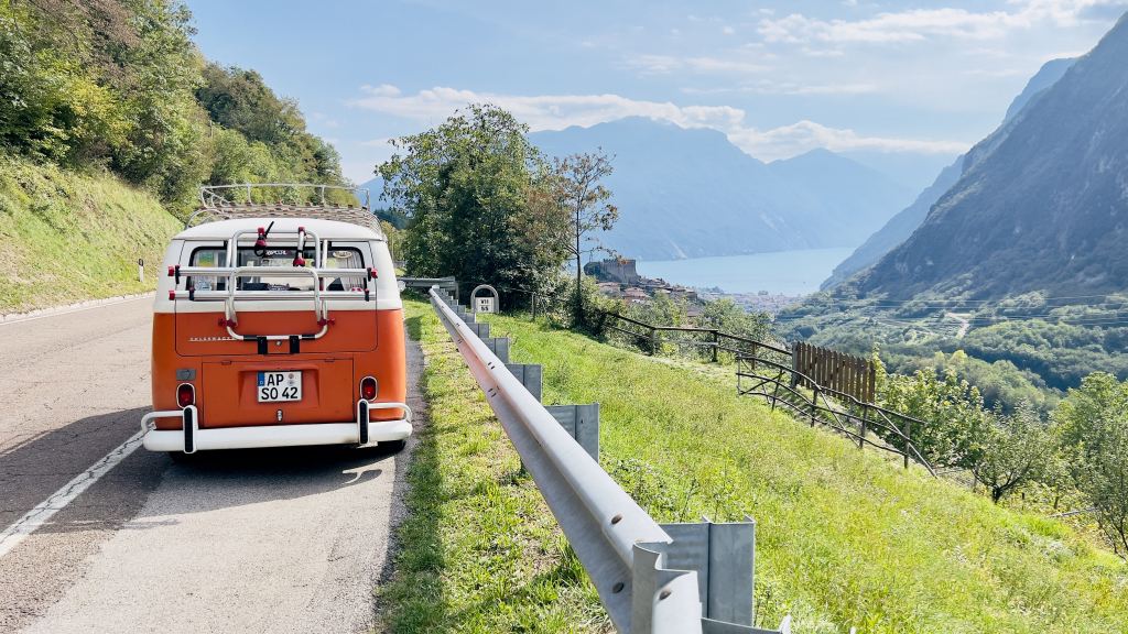 Am Lago di Garda fühlt sich selbst ein kurzer Ausflug nach richtiger Urlaub an. Zwischen Zitronenbäumen, kleinen Gassen, lebendigen Uferpromenaden und dem weiten Blick über das Wasser entsteht sofort dieses besondere Gefühl von Leichtigkeit. Tagsüber locken Sonne, See und italienisches Leben, am Abend ruhige Plätze, gutes Essen und stimmungsvolle Sonnenuntergänge. Der Gardasee ist kein Ort, den man einfach nur besucht, sondern einer, den man mit allen Sinnen erlebt. Genau das macht ihn zu einem so besonderen Ziel für eine Reise im Bulli.